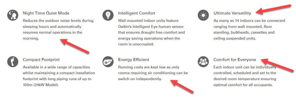 The list of benefits from the Daikin Product Brochure is impressive, see for yourself below: